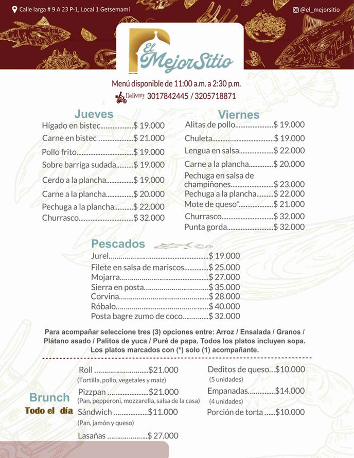 Gastronomía Menú - Sede Getsemani Calle Larga No. 9 A - 23